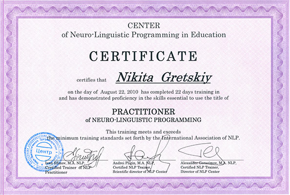 Поэтому я поехал в Москву из далекого Сахалина, чтобы освоить Нейро Лингвистическое Программирование. Мне понравилось консультировать людей, мое описание мира стало сложнее, возникло понимание того, что у разных людей разные ценности, убеждения и стратегии в жизни, которые с разной степенью успешности они реализуют, а большая часть проблем на пути их реализации – это ошибки коммуникации, не понимание себя, не знание своих мотивов, ценностей и возможностей. Иногда мы недооцениваем себя, а иногда переоцениваем.